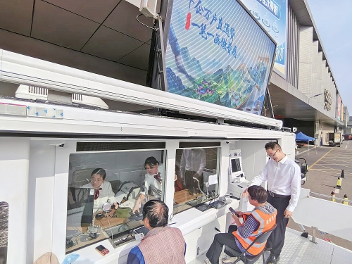 济南工行流动银行车开到长清农业批发市场服务商户。