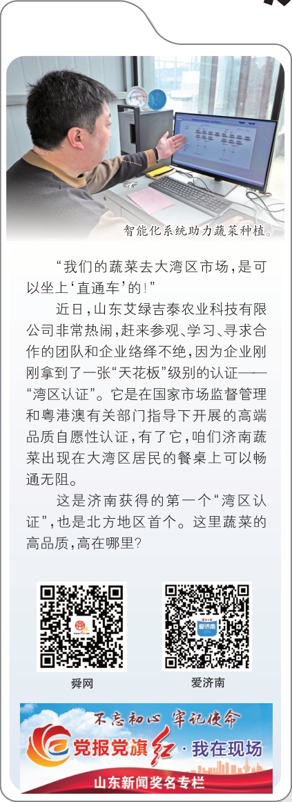 现在,这些高品质蔬菜想去大湾区,不用经过海关就能免检直达——今年1月2日,企业拿到了“湾区认证”证书,这是济南获得的第一个“湾区认证”,也是北方地区的首个,是全国在大湾区之外颁发的首个蔬菜品类认证。
