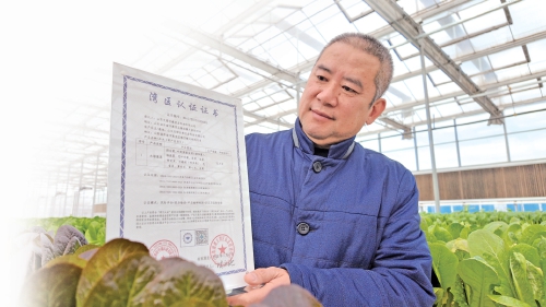 “你看这一段围挡,就是为了提升品质、获得认证,特地修建起来的。”董立新指着温室大棚外的蓝色围挡告诉记者,认证过程非常严格、复杂,企业自己提交材料后,认证方面的工作人员来到企业进行了实地考察,对标一项项标准提出整改意见,最终通过验收后才能获得有效期3年的认证。修建围挡的目的,是防止围挡外地块使用农药、化肥,影响企业的种植环境。