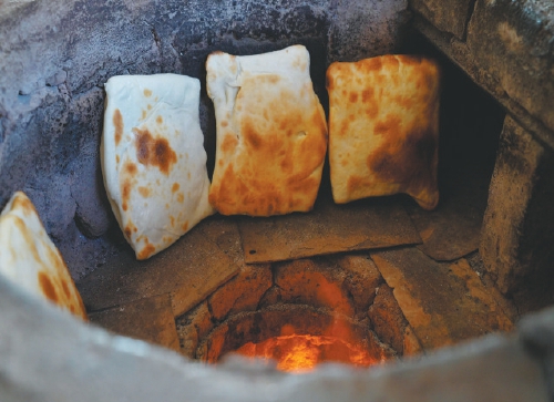 烤火烧的炉子也很特别,是用砖石垒成的。上下两层,上层的铁盘子上烙出金黄色,再转移到下层的明火层烘烤。整个过程需要25分钟,一炉仅能出10个火烧。