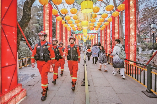强化科学布防。结合景区人流量分布特点,将园区划分为4个重点点位、6大防控区域,设置北门、南门、无忧泉、漱玉泉4处前置备勤点,确保人员密集区域全覆盖;同步部署6个流动巡查组,对主通道、临水区域及灯组供电设施开展动态排查,及时消除隐患。