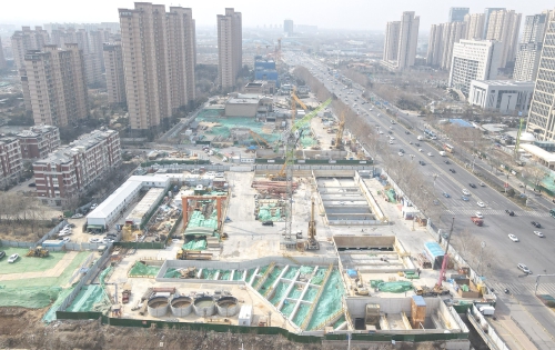 2月14日,济南轨道交通4号线腊山河西站(工程名)主体结构已顺利实现封顶,工程建设取得重大进展。据了解,腊山河西站位于经十路与腊山河西路交叉口西侧,沿经十路东西向敷设,为地下两层岛式车站,车站采用明挖+盖挖顺做法施工,共设3个出入口。车站长度为173.8米,主体标准段宽度22.3米,基坑深度约18.9米。目前,4号线全线33座车站已有32座完成主体封顶,站后机电、装饰装修、铺轨、供电等专业已全面进入攻坚阶段,为今年年底全线通车运营奠定了坚实基础。 (济南日报·爱济南记者 崔健 摄)