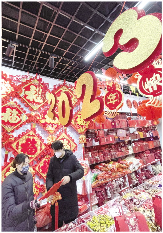 2022年12月31日,市民在潍坊商品城内选购新年饰品。随着兔年春节日益临近,市场上新年饰品销售日渐红火,中国结、灯笼、对联和兔年生肖饰品等商品琳琅满目,吸引了不少市民前来选购,处处洋溢着喜庆的节日气氛。 潍坊日报社全媒体记者 张驰
