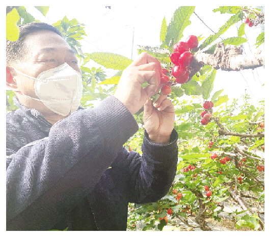 本报讯(潍坊日报社全媒体记者 张振民)1月1日,新年第一天,临朐县龙山含香家庭农场的2号大棚里,工人们正忙着采摘枝头上已经成熟的樱桃(下图)。