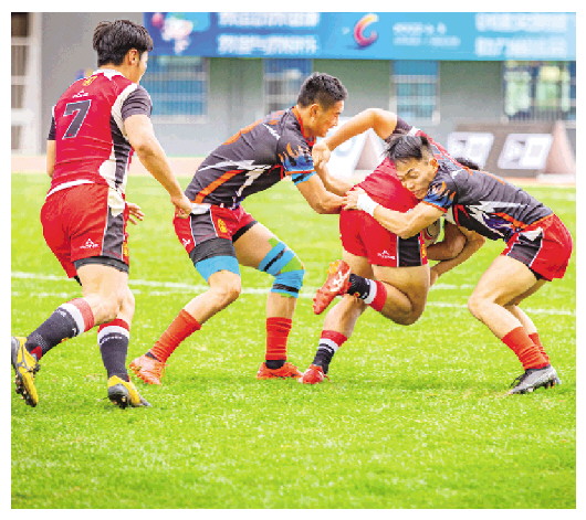 山东男橄(红)在决赛中。