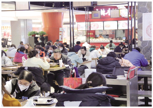 记者在泰华城看到,不少市民结伴逛街,餐饮店内都有不少顾客在堂食。市民李女士说:“‘阳康’之后特别馋,再加上也好久没出来玩了,今天中午实在忍不住便出来和同事聚餐,熟悉的‘烟火气’终于回来了。”