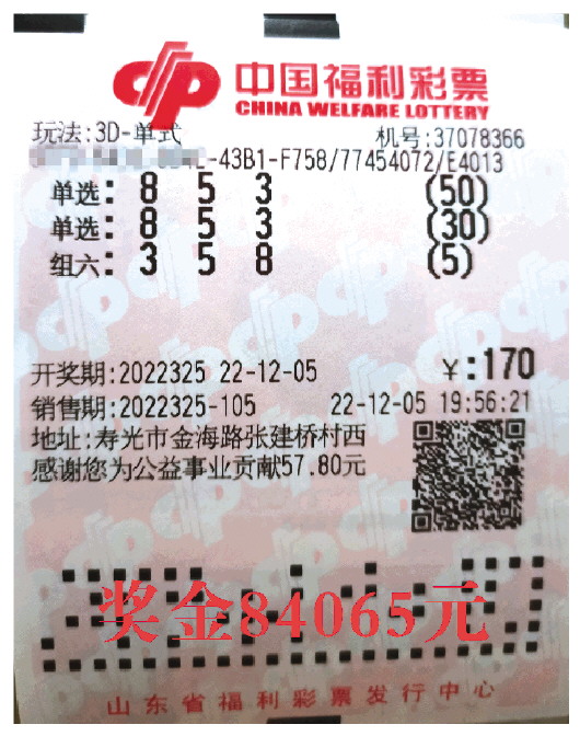 2022年12月25日,福彩3D游戏第2022345期开奖,摇出号码“5、0、3”。奎文区37070161号福彩站上彩友李先生(化姓),采用“单选+包点+位选”的方式中得奖金12480元,虽然奖金不是特别多,但其中却蕴含着许多巧妙的投注技巧。