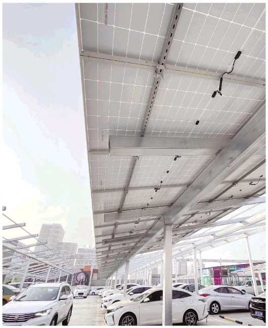 1月9日,记者在奎文区东风东街与新华路交叉口东北侧的潍坊印象汇楼顶看到,此处的停车场正在安装光伏板停车棚顶面。停车场总面积3200多平方米,光伏面板架设于停车位上方的钢架上,以光伏板代替车棚顶面,既能避免车辆日晒雨淋,又能为商场提供电能,还能让市民近距离接触新能源应用场景,倡导节能环保。 潍坊日报社全媒体记者 张驰
