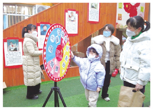 2月6日,潍城区教师幼儿园开园仪式拉开帷幕。图为孩子们转动幸运大转盘,领取新学期的专属惊喜,收获美好的祝福与期盼。