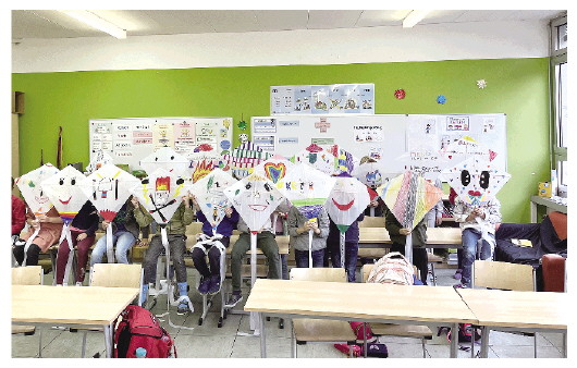 课堂上,该校3a班的孩子们(年龄多为9岁左右),怀着对世界风筝之都潍坊的极大兴趣,在班主任伊丽莎白·特里夫特勒和助教老师卡门·施特尔茨尔的指导下,开启了当天风筝设计和制作课。师生们首先观赏了潍坊市宣传片,随后,郭洪利从风筝的历史起源、制作技巧、世界风筝作品等方面深入浅出地向同学们进行了讲解,并示范授课。同学们在蒙面上挥动画笔,创作心仪的图案,在完成骨架粘贴、提线和放飞线绑定后,制作出令人印象深刻的美丽风筝。同学们纷纷表示,要在课后试飞自己的风筝。