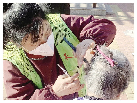 2月20日,在潍城区城关街道长胜社区,志愿者正在为居民义务理发。农历二月二龙抬头来临,为倡导文明新风尚,当天该社区开展了一场“春意盎然龙抬头 免费理发进社区”活动,志愿者为居民分别设计不同的发型,一边理发一边与居民聊家常,现场气氛活跃、温馨。志愿者手中的银剪上下翻飞,娴熟精湛的理发技艺让居民精神面貌焕然一新。 潍坊日报社全媒体记者 张驰