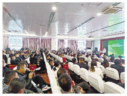 在付立红附近就座的是寿光菜可丰农业科技发展有限公司负责人张小国,他们主要研发生产智能轨道打药机,以前曾经参加过室内展位拍卖会,拍得心仪的展位,给企业带来了效益。对拍卖会现场人气爆棚,他感慨不已:“从2020年到现在,三年没举办拍卖会了,大伙憋得不行,没想到今天来了这么多人!”