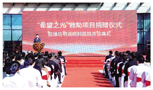 本报讯(潍坊日报社全媒体记者 王路欣 常方方)2月26日上午,万里和风,阳光明媚,“希望之光”救助项目捐赠仪式在潍坊明润眼科医院正式启动。据了解,“希望之光”救助项目贯彻落实《山东省残疾预防和残疾人康复条例》,将有效减少和控制残疾发生、发展,早日实现“人人享有看见的权利”的眼健康目标,逐步消除可避免盲和视觉损伤。相关领导、爱心企业、医院代表出席本次捐赠仪式。