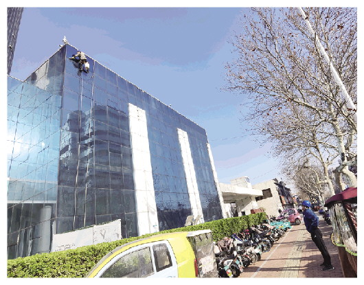 本报讯(潍坊日报社全媒体记者 赵春晖)3月19日,在潍城区东风西街与向阳路交叉口附近,有工人正在对一栋沿街建筑物的外立面开展“洁面”作业(右图),对楼体玻璃幕墙进行全面清刷。“洁面”完成后,这栋楼外立面变得干净整洁了。