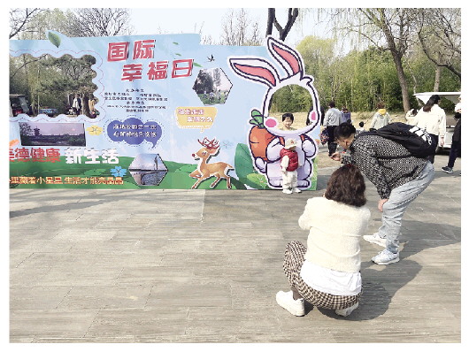 “这儿有小兔子图案,还有小鹿图案,太漂亮了。快,妈妈给我拍张照。”3月19日是周日,有不少市民到白浪绿洲湿地公园游玩。位于公园大门口的幸福打卡地,吸引了不少市民的注意,大家纷纷在此拍照留念(上图)。这处打卡地设计得十分新颖好看,不仅有“国际幸福日”的相关主题,而且将该公园内的一些著名景点一一呈现在打卡墙上。