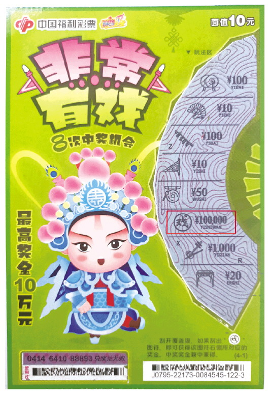 潍坊彩友10元刮中“非常有戏”头奖10万元