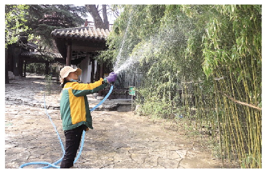 3月28日,在市人民公园,园林工人正在用高压水枪冲刷绿植。 日前,市园林环卫服务中心人民公园服务所组织养护人员对园区内的园林植物、园林小品、园区道路进行全面的喷水冲洗,给绿植“除尘提亮”。同时,通过人工喷水、滴灌等多种方式,给园区内的各类绿植浇水,让绿植“喝饱”,茁壮成长,进一步提升了绿化档次,给市民创造干净整洁的游园环境。 潍坊日报社全媒体记者 赵春晖