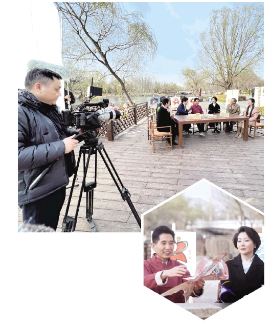 4月5日,潍坊风筝省级代表性传承人郭洪利做客CCTV11《梨园周刊》栏目清明特别节目《春暖花会开》播出。郭洪利向全国观众现场首发中国戏曲主题风筝,带领嘉宾体验潍坊传统风筝制作工艺。上图为节目拍摄现场。 潍坊日报社全媒体记者 刘燕