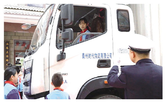 本报讯(潍坊日报社全媒体记者 张益阁)近日,青州市公安局交警大队组织民警将货车“开”进青州市王府街道团结小学,为学生上了一堂生动的交通安全体验课,提升了中小学生的自我防护意识和能力。