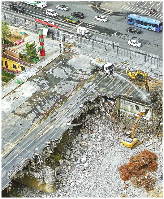 4月11日,在白浪河东风桥拆除重建工程施工现场,挖掘机、破碎锤、粉碎钳、液压剪等多辆专业机械正在开展联合作业,对桥体进行破碎拆除,并对拆除下来的建筑垃圾进行清理,雾炮车不停往作业现场喷射着水雾进行降尘。施工现场热火朝天,拆除重建有序推进。 潍坊日报社全媒体记者 赵春晖 通讯员 付明皓 (欣赏更多精彩图片请关注潍坊融媒)