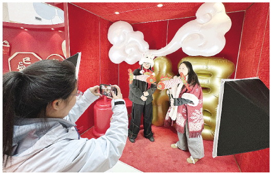1月15日,记者在奎文区泰华商圈看到,随着春节临近,一处以“喜迎新春”为主题的打卡地吸引了市民的目光,整体氛围以大红色为主,年味扑面而来。市民在这里可以换装拍照以及书写“福”字,感受红红火火喜迎新春的节日氛围。 本报记者 张驰