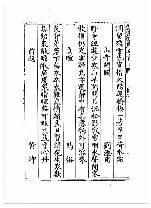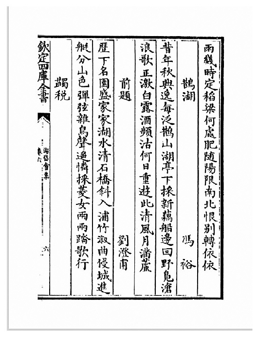 冯裕画像(青州博物馆藏)。 《四库全书》载冯裕《鹊湖》。 《四库全书》载冯裕《负暄》。 冯裕祖籍临朐,世代簪缨,他的一生坎坷波折。冯裕在“海岱七子”中文学成就最高,其诗师法古乐府、古诗十九首和建安诗歌,追求汉魏诗歌不假雕饰、自然天成之美,继承现实主义传统,直抒胸臆、自出机杼。《海岱会集》冯裕存诗128首,后辑为《方伯集》。 北海文学世家奠基人 四个儿子皆有才名 冯裕可以说是“海岱七子”中文学成就最高的人,他是“北海文学世家”的奠基人。明清时期文学世家冯氏家族自冯裕发端,先是四个儿子以诗文才名著称,人称“临朐四冯”,三子冯惟敏更成为“明代曲家第一人”,后世学者称其为“曲中辛弃疾”。 正如明代著名学者康丕扬在遴选《冯氏五先生集》时说:“(四冯)赋追骚湘,古拟苏李,五七言近体出入三唐,高者足敌沈宋,而余者不堕齐梁。则其才情所至,灵异独钟,从古以来,未有兄弟如此之并盛矣。”后来到四世冯琦,“北海冯氏”蜚声海内,至六世冯溥官刑部尚书,授文华殿大学士,加太子太傅,掌清初文柄,为冯氏家族的集大成者。 冯家诗书传家、世代簪缨,冯氏家族从明朝中期的冯裕兴起至清康熙年间历时七世二百余载,出了10位进士、13位举人、53位贡生、278位秀才,有诗文集存世者不下百余人,有5人作品入选《四库全书》,成为“父子质行齐鲁,诸儒莫及”的影响海内的文学世家。 冯裕(1479—1545)字伯顺、号闾山,《明史》卷二一六有传,《欧阳南野文集》卷二十六记其生平事迹较详。其先祖冯思忠戍守辽东广宁(今辽宁省北镇县)。祖籍山东临朐,其父冯振官至奉直大夫与南京户部郎中。12岁丧父、14岁丧母,少时孤贫无依,由叔祖母池氏养育成人。冯裕笃行节义、感念养育之恩,对池氏孝而弥笃、奉养终老。他师从理学家、一代大儒贺钦,在老师的教诲下饱读诗书、立下了经邦纬国之志。他尊师重道、感念师恩,为官后常用自己的俸禄接济老师贺钦,为后世子孙树立了尊师孝亲的光辉典范。 勤政清廉惹怒权贵 远离朝堂经历悲欢 明弘治十七年(1504)冯裕中举、明正德三年(1508)中进士,而立之年的他开启了施展宏图大志的奋飞之旅。他南北为官28载,历华亭县令、晋州知州、南京户部员外郎、平凉知府、石矸知府、贵州按察副使等位。嘉靖十三年(1534),55岁的冯裕因忤逆权贵致仕归里,定居郡城青州,读书讲学、诗友唱和,过着虽然清苦但远离朝堂纷争的日子。 冯裕为官勤政爱民。初知华亭,民众遭受雨灾,他让受灾民众缴纳十分之一的赋税,此举让大户们不满却深受百姓拥戴;他知晋州时,滹(hū)沱河河道南迁,城北土地顿失灌溉之利以致大旱,冯裕命手下将税粮合理调整保证民生,离任后百姓为他设生祠以祭;南京任上他作为户部员外郎掌管出纳,他制定规章严密,秉公行事,惹怒权贵,权贵大费周章寻他短处,因他执法严明绝无纰漏,得以保全自己;石矸(gān)地处西南边境、民族矛盾复杂,常有械斗诉讼发生,冯裕公正裁断、绝不袒护,曾于双方对垒千钧一发之际,单车独身前往游说,使双方悦服,避免了流血事件的发生;贵州任上他勉力平蛮,使土匪避之不及,力保一方百姓平安。 冯裕为官刚正不阿、处事果断,而其外貌憨厚朴实,与其性格对比鲜明。《光绪临朐县志》说他“当官抗直,有裁断,而貌粥粥若无能者。尝谓希宠者负君,媚人者负己,谋身者负人,生平盖三无负矣”。不希宠,不媚人,不谋身——“三无负”是他的人生准则。 冯裕为官清廉、囊无余钱。《光绪临朐县志》有言:“官囊萧然,不能自给”。幸亏长子惟健善于经营持家有方,使老父亲得以粥饭温饱。惟重、惟敏、惟讷三个儿子先后中举,惟重、惟讷双双于嘉靖十七年(1538)进士及第、主政一方,让他无比欣慰。不幸的是“福无双至,祸不单行”,嘉靖十八年(1539)次子惟重客死庐州(今合肥市),第二年幼子惟直病死家中。清贫生活之困、连丧爱子之悲,与半生为官的殊荣、隐居田园的惬意相互交织,让他五味杂陈、百感交集,丰饶的生命质地里开出无数朵美好而深邃的诗词之花。 其诗师古自然天成 直抒胸臆自出机杼 一代名臣、明通议大夫、兵部右侍郎魏允贞在《海岱会集》序中称其“异乎今君子诗矣”。冯裕之诗师法古乐府、古诗十九首和建安诗歌,追求汉魏诗歌不假雕饰、自然天成之美,继承现实主义传统,直抒胸臆、自出机杼。《海岱会集》冯裕存诗128首,后辑为《方伯集》,曾孙冯琦又将冯裕诗作分别编入《五大夫集》和《北海集》。 如他的《负暄》诗:“炙背茅檐下,无衣卒岁难。应怜赵孟日,暂解范生寒。叹息貂裘敝,瞻依广厦寒。晴晖无可报,只益寸心丹。” 全诗明白晓畅,如清水芙蓉。“赵孟”代指“尊贵之人”,春秋时晋国正卿赵盾字孟,其子孙都称赵孟,赵氏世代执掌晋国朝政,无比显贵。诗的大意是:没有御寒衣物度过寒冷的冬天非常艰难,只好在茅屋檐下晒太阳取暖。那些照耀着富贵人家的日头,也暂时缓解了范生这样的贫苦人的寒冷。(富人们)在叹息貂裘的破旧,(穷人们)却眼望着他们高大的房屋楼厦更觉得寒冷。人们对这暖暖的阳光无以为报,只有一颗火热的心。 如果说《负暄》是诗人面对贫寒生活积极向上以苦为乐的情怀,那么《鹊湖》则为对生活美好画卷的怀想与沉浸: “昔年秋兴逸,每泛鹊山湖。亭下采新藕,船边回野凫。沧浪歌正激,白露酒频沽。何