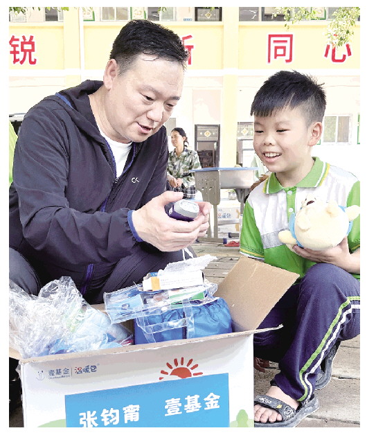 7月5日,潍坊市鸢都义工公益服务中心理事长孙志达在贵州省榕江县三江水族乡中心校为受灾儿童发放夏季温暖包,在传递爱心的同时帮助孩子们缓解灾后焦虑情绪。近日,贵州省榕江县连遭特大暴雨袭击,潍坊市鸢都义工公益服务中心迅速响应,组织志愿者奔赴灾区开展救助物资发放工作,展现了潍坊志愿者“一方有难、八方支援”的大爱情怀。 本报记者 张驰(图片由受访者提供)