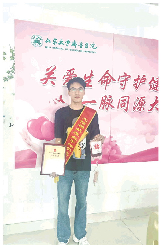7月8日,高密的王艺杰为一位陌生的血液病患者捐献280毫升造血干细胞,让这位血液病患者看到了生的希望。