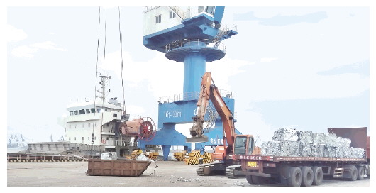 潍坊港区东作业区1#泊位在进行废钢装船作业。