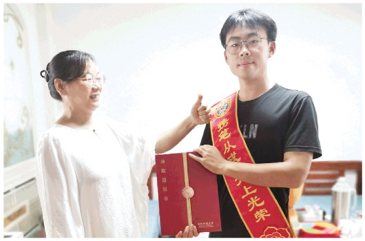 郭宁宁贴心地帮张义轩把绶带佩戴到身上,忍不住为儿子竖起大拇指,连声称赞:“儿子,你太棒了。”“录取通知书拿在手里沉甸甸的,我心里有说不出的高兴和激动。国防科技大学,我的梦中情校,努力了八年,终于等到你,我来了。”张义轩激动地说。