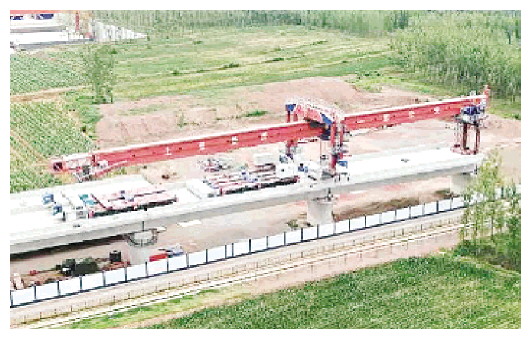 潍宿高铁站前三标全长34.1千米,诸城梁场承担着标段内934孔箱梁的预制及架设任务,此次架设的箱梁位于宿迁方向102号与103号墩之间,是梁场承担架设任务中的第六孔箱梁,架梁运用的JQBD900架桥机凭借其稳定的性能和精准的操控成为“关键功臣”。