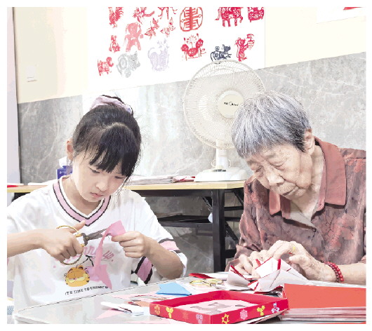 “孩子们拿稳剪刀,我们一起来剪一只小刺猬……”90岁的苑淑兰正耐心地教授孩子们剪纸技艺。老人思维敏捷,和孩子们沟通起来完全没有代沟。孩子们则认真地观察着,时而低头思考,时而动手尝试。