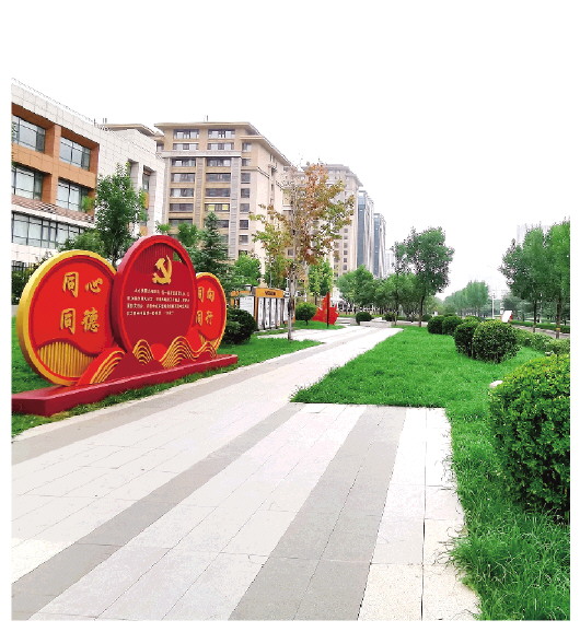 公园入口处,放置刻有“同心园”的景观石,“石榴籽精神”宣传景观矗立在路旁,引人注目,好似盛开的民族团结之花,热情欢迎来客。