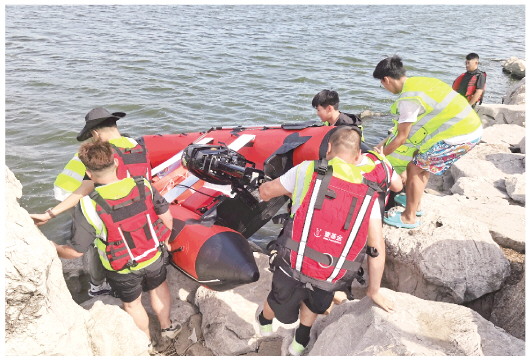 7月22日,在壹基金安全家园项目支持下,诸城市密州街道社区志愿者救援队与诸城市中安工程机械应急救援中心的志愿者,在诸城潍河公园展开了一场水上应急演练。当天,救援队员集中演练了橡皮艇操作、落水施救等“硬核”技能,反复打磨每一个救援环节,只为在真实的急难险重面前,能将速度提升一分,将生命守护的屏障筑牢一寸。 本报记者 刘晓梅 实习生 谭乐妍
