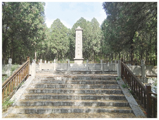 坐落在长秋村松林深处的抗日烈士纪念碑。
