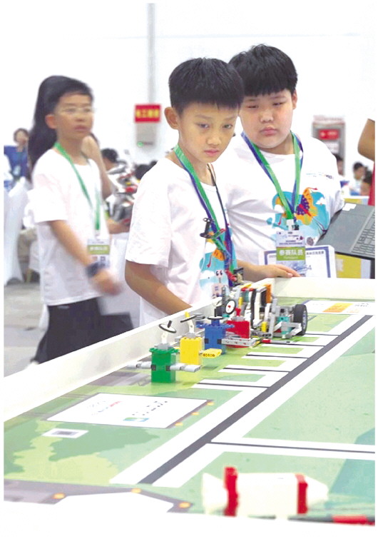 7月24日,在鲁台会展中心,参赛选手正在操纵机器人进行比赛。当日,2025未来视界·机器人嘉年华活动在我市鲁台会展中心开幕。本届嘉年华以“未来视界”为主题,来自国内各大城市及全球十余个国家和地区的2000余名青少年机器人爱好者会聚于此,进行一年一度的机器人技术比拼与文化交流。 本报记者 潘来奎