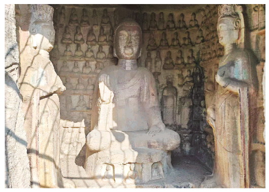 另外,在第一、二窟之间的峭壁上,还有一处佛龛造像,雕凿佛、菩萨数十尊。其造型丰富多彩,与石窟造像相映成辉,具有重要价值。