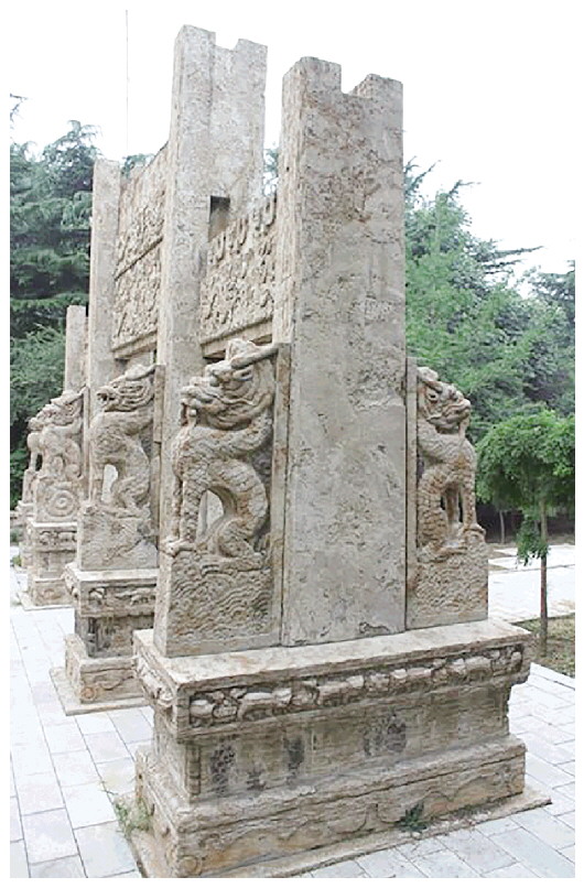 据考,两座石坊建筑时间在嘉靖十九年(1540)至嘉靖二十一年(1542)间,为第二代衡王庄王朱厚燆在位时所建。