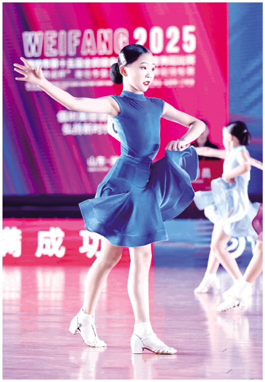 7月27日,一名选手在比赛中。当日,潍坊市第十五届全民健身运动会体育舞蹈比赛暨“明润杯”2025潍坊市第二十届体育舞蹈锦标赛在潍坊学院体育馆开幕,设标准舞、拉丁舞等5大类,比赛在各县市区举行选拔赛、热身赛,筛选精英选手,确保市级决赛高水平竞技,整个赛事吸引了2000余名选手参赛。 本报记者 付东升