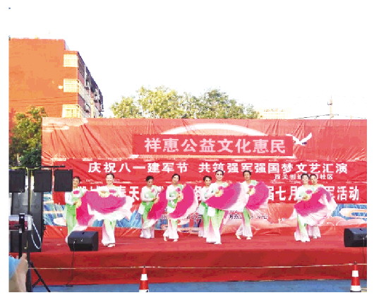 近日,潍城区西关街道西园社区举办“庆祝八一建军节 共筑强军强国梦文艺汇演”,舞蹈、合唱、器乐演奏等十余个节目轮番上演,为群众送上了一场视听盛宴。整场演出激情满怀、振奋人心,优美的舞姿、高亢的歌声表达了对军人的崇敬,展现了人民群众对美好生活的赞美和祈盼祖国繁荣昌盛、人民幸福安康的美好愿景。 本报记者 袁丽丽