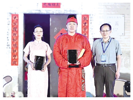 王瑕(左一)在颁奖现场。