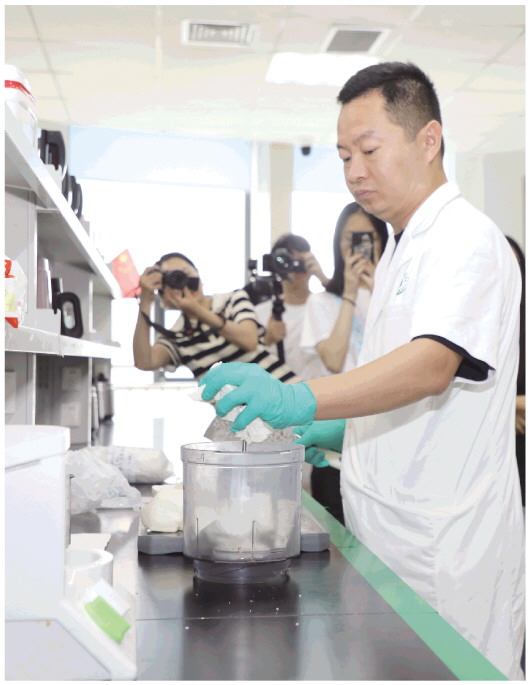 8月1日,在潍坊市检验检测中心,一名检验人员现场演示馒头的检测过程。当日,一场以“你点我检·服务惠民生”为主题的开放日活动在此举行,活动邀请消费者、新闻媒体人员等各界代表走进潍坊市检验检测中心实验室,从指尖“点单”到亲眼见证检测全流程,让“舌尖上的安全”从抽象的承诺,变成了可触可感的实践。 本报记者 刘伟 杨小凡