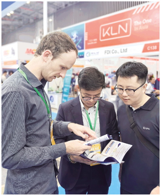 7月31日至8月2日,第三届越南国际物流展览会在越南胡志明市西贡会展中心隆重举行,山东港口渤海湾港作为国内唯一港口企业,携手山东港口海外发展集团、国贸宝华海运有限公司共同参展。这是渤海湾港首次在国外作为参展方亮相,也是渤海湾港积极融入共建“一带一路”倡议、向国际化港口转型的里程碑。图为渤海湾港工作人员为国外客户介绍“门到门”定制化全程物流解决方案。 本报记者 王瑗 通讯员 任科昕