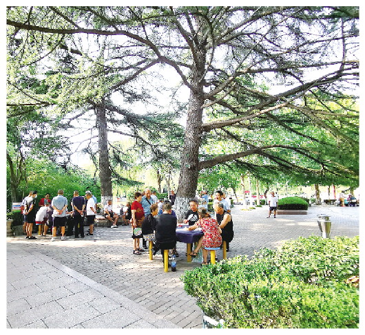 东苑公园内,老人们正在打扑克。