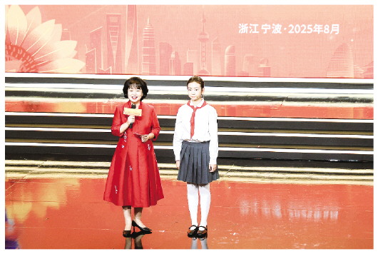 ◥刘佳诺(右)在发布仪式现场与主持人交流。