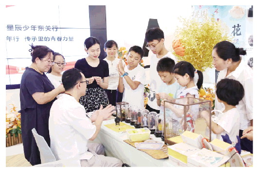 8月21日,在奎文区东关街道民生街社区,一件件非遗作品吸引了孩子们的目光。为丰富社区孩子们的暑假生活,当日,该社区开展了一场“非遗课堂”活动,邀请非遗传承人走进社区,展示传统非遗技艺,让孩子们感受家乡传统文化的魅力,充实假期生活。 本报记者 张驰