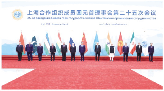 习近平同出席会议的上海合作组织成员国领导人、常设机构负责人集体合影。 新华社发