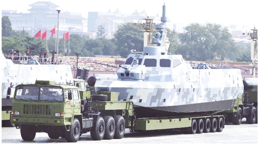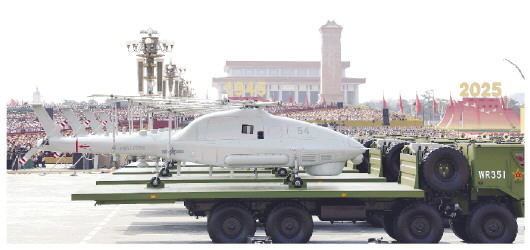 海上无人作战方队接受检阅。 陆上无人作战方队接受检阅。 空中无人作战方队接受检阅。 空中无人作战方队的装备。 陆上无人作战方队陆上有人无人协同作战实现新突破 跨越险阻,无往不至。陆上无人作战方队3日上午通过天安门广场,接受祖国和人民检阅。 受阅装备为侦打突击、扫雷排爆、班组支援等无人战车。侦打突击无人车是一款可遂行多样化军事任务的新型无人装备,是现代无人装备融入现有作战体系的重要组成部分;扫雷排爆无人车遂行扫雷排爆、通路开辟等任务,能够融入现有作战体系;班组支援无人车与步兵共同构成班组作战单元,遂行弹药给养、物资器材伴随保障等任务,必要时执行伤员输送等任务。 这个方队由陆军第71集团军为主抽组。 海上无人作战方队 创新海战样式的“奇兵利器” 自主巡弋,出击深蓝。海上无人作战方队3日上午通过天安门广场,接受祖国和人民检阅。 这个方队受阅的新型无人潜航器、无人艇、无人布雷系统,具备隐蔽布放封锁、自主探测识别、集群组网攻击等作战能力,是海上作战的“奇兵利器”。 海上无人作战方队由海军某部牵头组建。空中无人作战方队创新未来空战新样式 人工智能,空天争锋。空中无人作战方队3日上午通过天安门广场,接受祖国和人民检阅。 方队新型察打一体无人机、无人僚机、舰载无人直升机等装备,可隐蔽出击、广域覆盖、自主协同,创新未来空战新样式。 受阅的5型7种装备,是我国自主研制的新型空中无人装备,具备陆基、舰基作战能力,主要执行战场侦察、监视、打击等多样化作战任务。 方队以海军某团和空军航空兵某团为主体抽组建成。 本版文图均据新华社