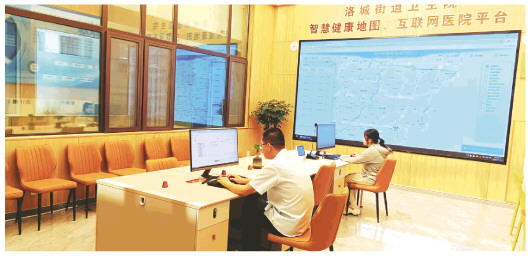 更令人惊叹的是,“智慧健康地图”还能追溯患者的家族病史,提前预警遗传风险。洛城街道65岁的周先生因患有高血压、冠心病和糖尿病,被系统发现其家族遗传病风险高达47%。家庭医生随即对其家属开展重点随访,将健康干预前置到“发病前”。周先生佩戴的智能手环将血糖、血压等数据实时传回系统,医生据此提醒他及时调整用药,实现了“实时健康监控”。
