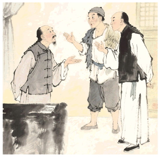 三兄弟回家各自使劲往衙门里送钱,书吏写账单把银子收下,让他们回家候着。还没走,就听到大堂上喊排衙,大老爷升堂了,三兄弟哪里还走得了?跟着衙役到大堂上一看,自己的老爹早在这里了,正对着账单一笔一笔往回收钱。监生老三不干了:“大老爷,这是我们过房当孙子的钱啊。”
